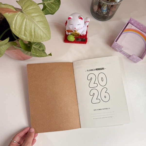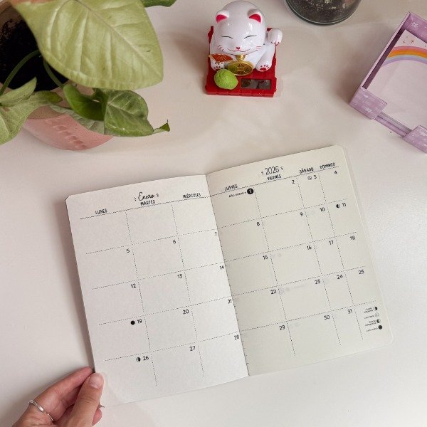Organizador mensual 2026 ✨ Modelo en papel madera con interior clásico.